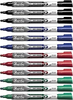 BIC Magic Marker Dry-Erase Markers, Pocket Style, Bullet Point, Assorted, 12-Pack