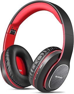 August EP650 - Bluetooth Kopfhörer v4.2 NFC mit aptX Low Latency - Stereo Over Ear Headphones mit August Audio App kabellose Kopfhörer mit Mikrofon für Freisprecher tiefer Bass 15h Akku (Rot)