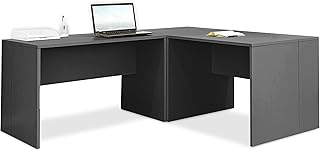 sogesfurniture Computertisch Eckschreibtisch in L-Form, großer Gaming Schreibtisch PC Tisch Winkelkombination Arbeitstisch Bürotisch, Schwarz BHEU-HD-SFZJ02BK