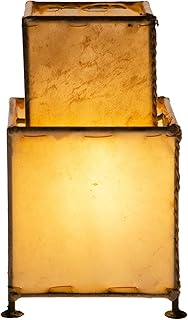 Orientalische Tischlampe Janka 30cm Lederlampe Quadratisch Lampe | Marokkanische kleine Tischlampen aus Metall, Lampenschirm aus Leder | Orientalische Dekoration aus Marokko, Farbe Orange