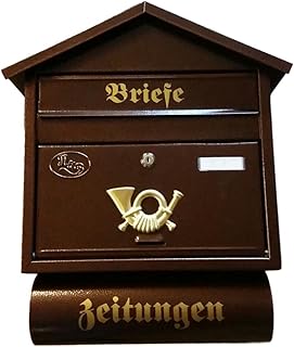 Briefkasten mit Zeitungsfach Post aus Metall Zeitungen Post antik Mailbox Schild (Braun)