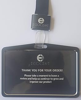 Ausweishalter aus Aluminium von EGOCENT in Schwarz, vertikal mit hochwertigem Trageband für Werksausweis, Besucherausweis, Messen - Schutzhülle für gängiges Kartenformat zum Umhängen