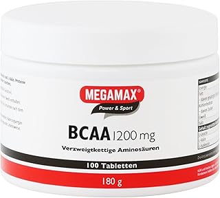 MEGAMAX BCAA 1200 mg Branched Chain Amino Acids | BCAA 2:1:1 hochdosiert L-Leucin L-Isoleucin L-Valin | Verzweigtkettige Aminosäuren für Muskelaufbau | Muskelerhalt | Kraftsport | Bodybuilding | Fitness | Diät