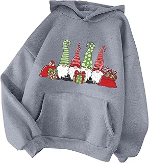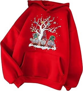 Weihnachtspullover Hoodie Damen Weihnachtsdruck Herbst/Winter Langarm Kapuzenpullover mit Kordelzug und Taschen Teenager Mädchen Sport Freizeit Alltag Tops Weihnachts-Hoodie