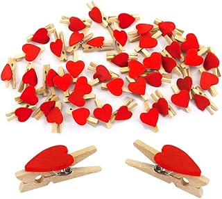 Nuluxi Mini Rot Wäscheklammern Deko Mini Holzklammern Herz Set Liebe Herz Kleine Holz Klammer für Foto Fotowand Fotoleine Foto-Postkarte Basteln Hochzeit Party Dekor Oder DIY Karte (50 Stück,Rot)