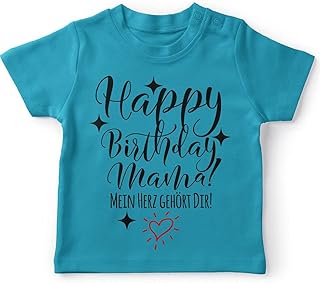 Baby/Kinder T-Shirt mit Spruch für Jungen Mädchen Unisex Kurzarm Happy Birthday Mama! Mein Herz gehört Dir! | handbedruckt in Deutschland | Handmade with Love