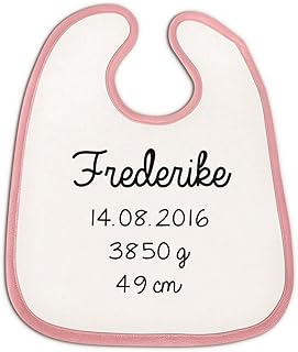 Lätzchen"Name, Geburtsdatum, Gewicht (g) und Größe (cm) / personalisiert" - Mädchen oder Junge Geschenkidee Babylatz Geburt Geschenk Taufe Baby Personalisierung (Rosa)