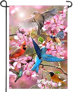 Anley[Doppelseitig] Premium Frühling Garten Dekorative Fahne, Blume und Vogel Willkommen Garten Fahnen - wetterBeständig & Doppelt genäht - 18 x 12,5 Zoll