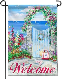 Anley Doppelseitige Premium-Gartenflagge, Sommerküste Tor Strand Willkommen Dekorative Gartenfahnen - wetterBeständig & Doppelt genäht - 18 x 12,5 Zoll