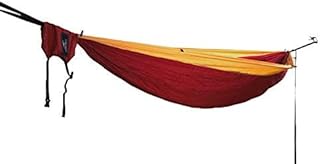 Hideaway Outfitters Outdoor Reise Camping Doppel Hängematte f. 2 Personen inkl. Baumgurte, Aufhängung, Fallschirmseide Ultraleicht Nylon Bordeaux Rot mit gelben Rand