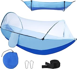 Camping Hängematte mit Moskitonetz, Hängematten mit Baum-Riemen Karabiner, Outdoor Tragbare Hängematte Männer Frauen Kind, Nylon Fallschirm Hängematten für Backpacking, blau