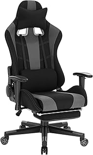 WOLTU BS98gr Gaming Stuhl Racing Stuhl Ergonomischer Stuhl Schreibtischstuhl Höhenverstellbarer Gamer Stuhl Drehstuhl mit Fußstütze und Wippfunktion Bürostuhl, Stoffbezug, Grau